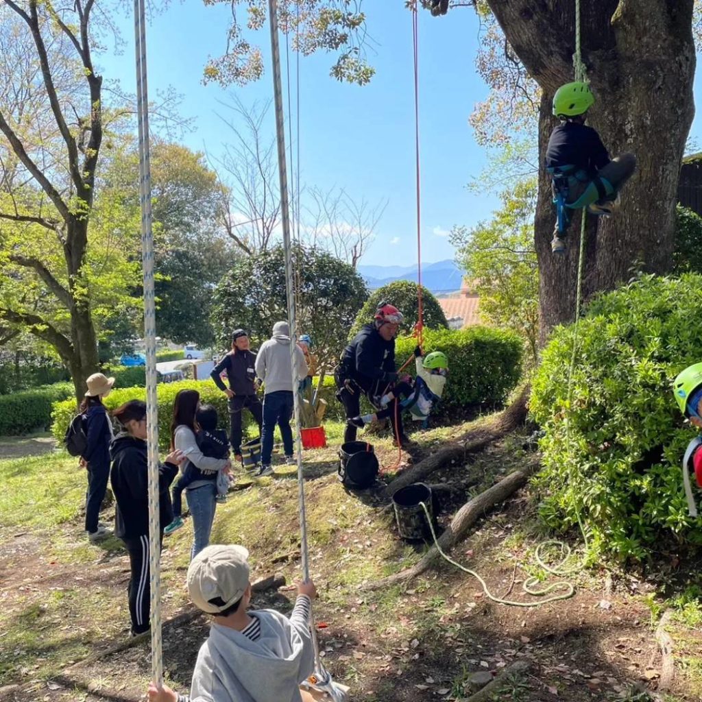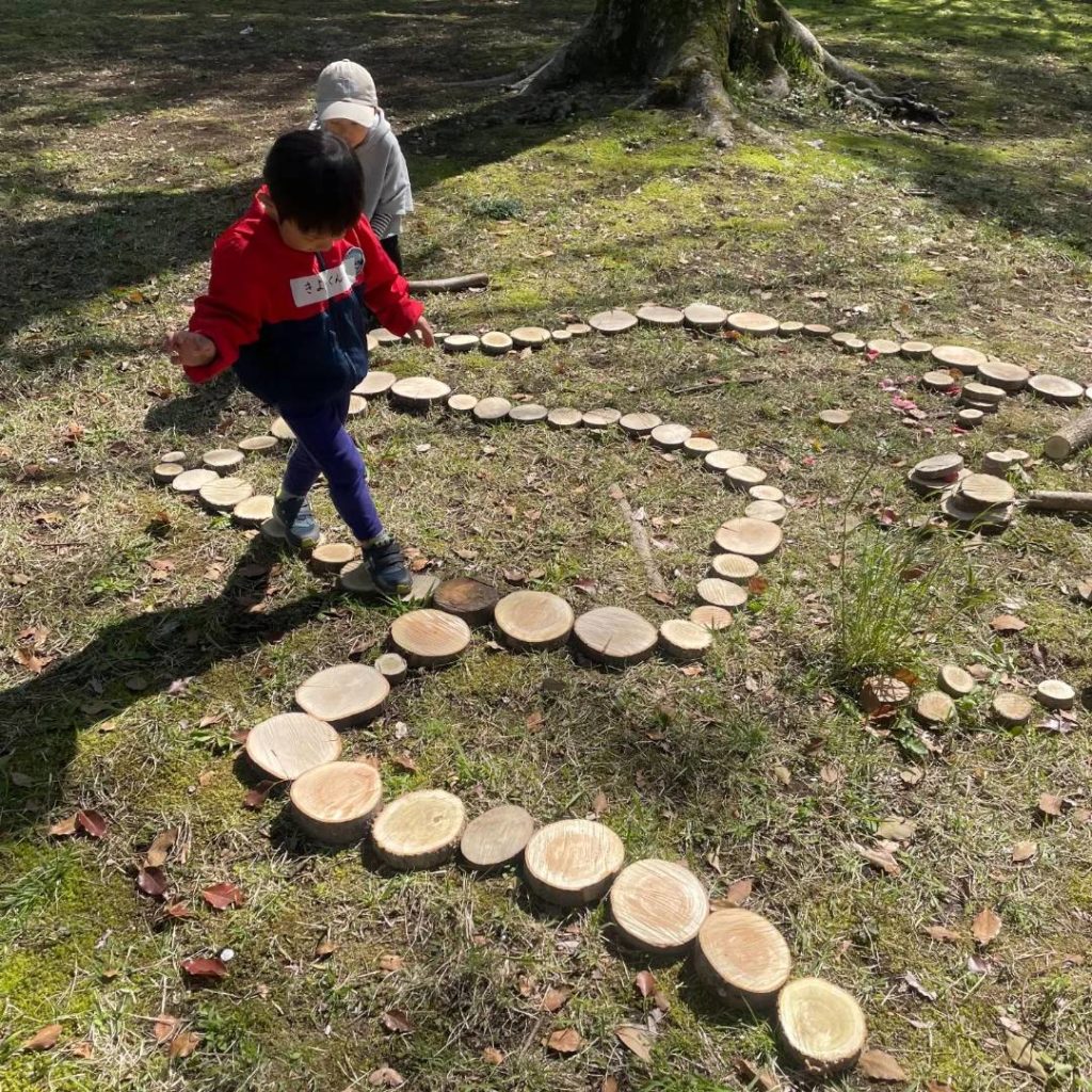 丸太の輪切りや枝を使った遊びや、大きな樹を使った木登りやブランコなど、木と楽しみながら触れ合う遊びや体験ができます😊