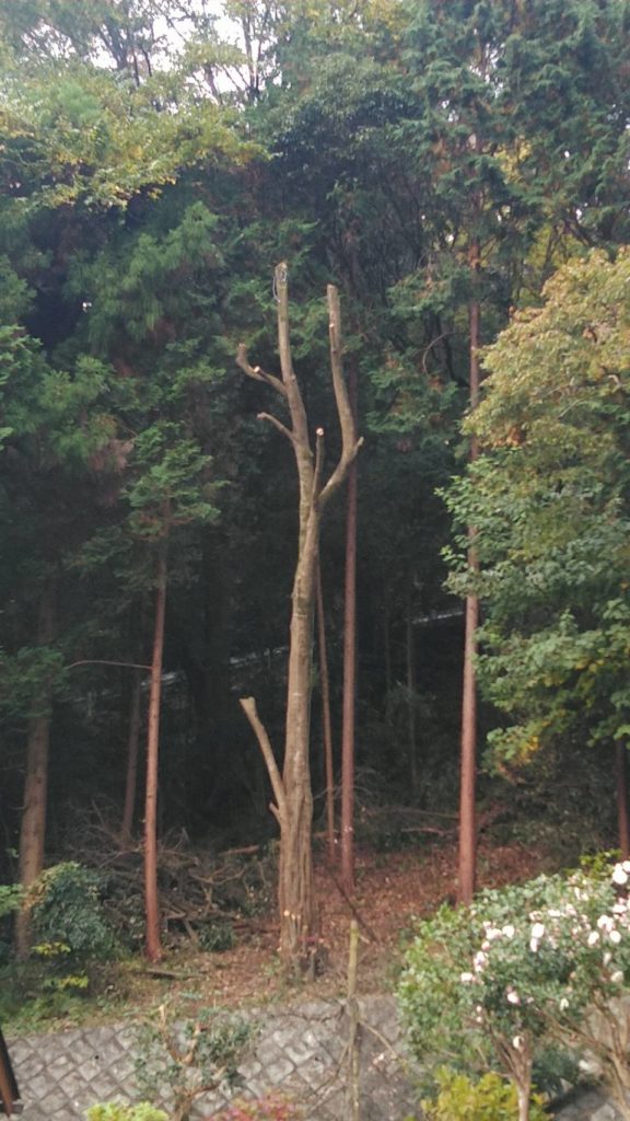 富士宮市にて枯れた樫の木を危険除去のため伐採しました