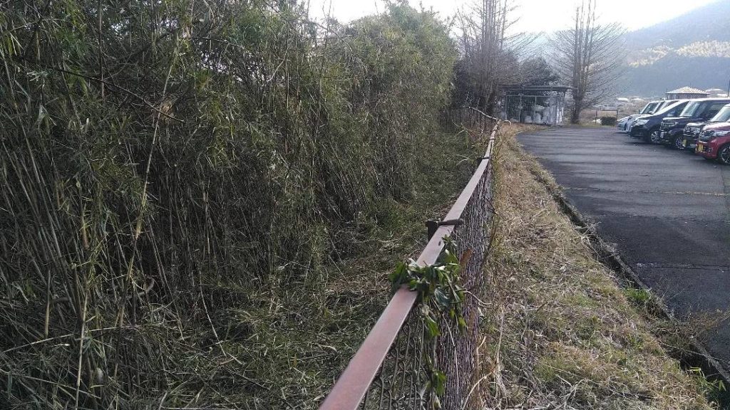 駐車場裏の3メートル近い竹やぶも刈り込み、すっきり片付きました!