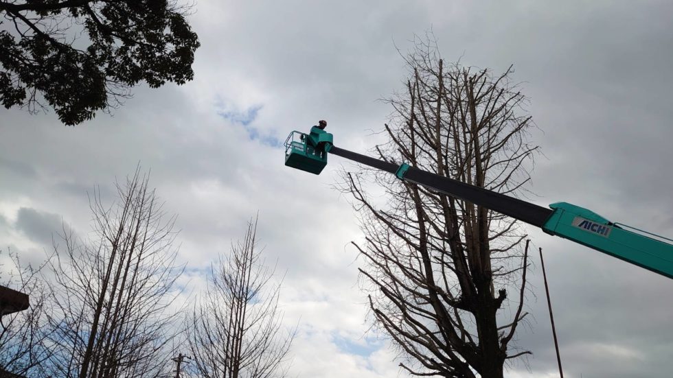 以前緊急伐採させていただいたこども園様のご依頼で、けやきといちょうの危険な枯れ枝除去作業を行わせていただきました✨