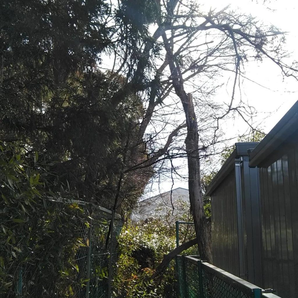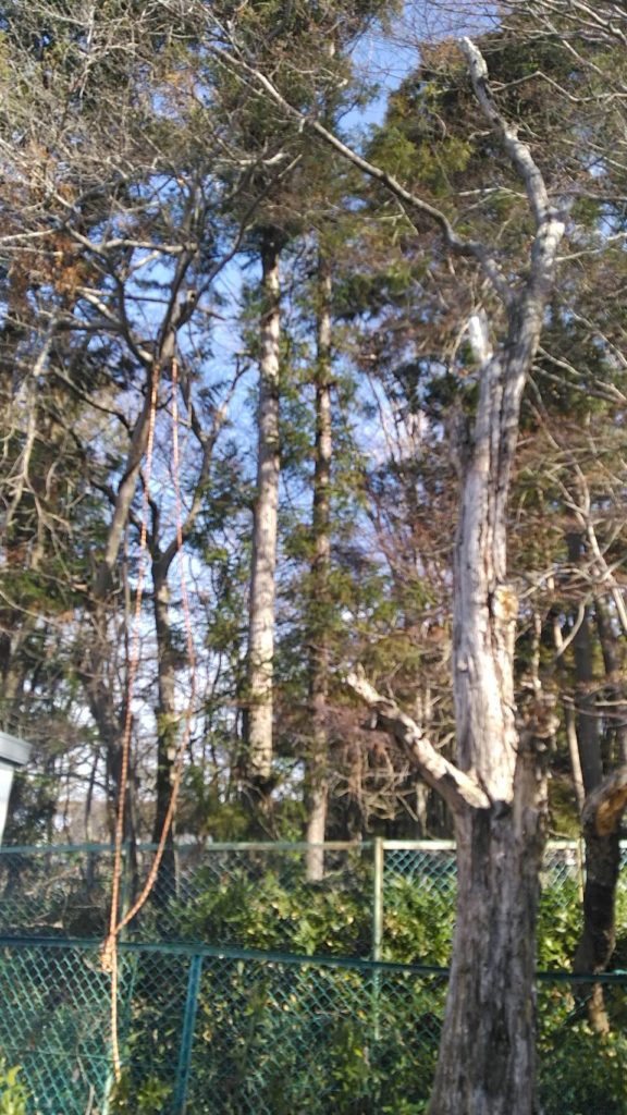 枯れ木、越境枝はクライミングによる伐採で問題なく除去させていただき、陽当たりも良くなり、落ち葉被害の心配もなくなってとても喜んでいただきました!