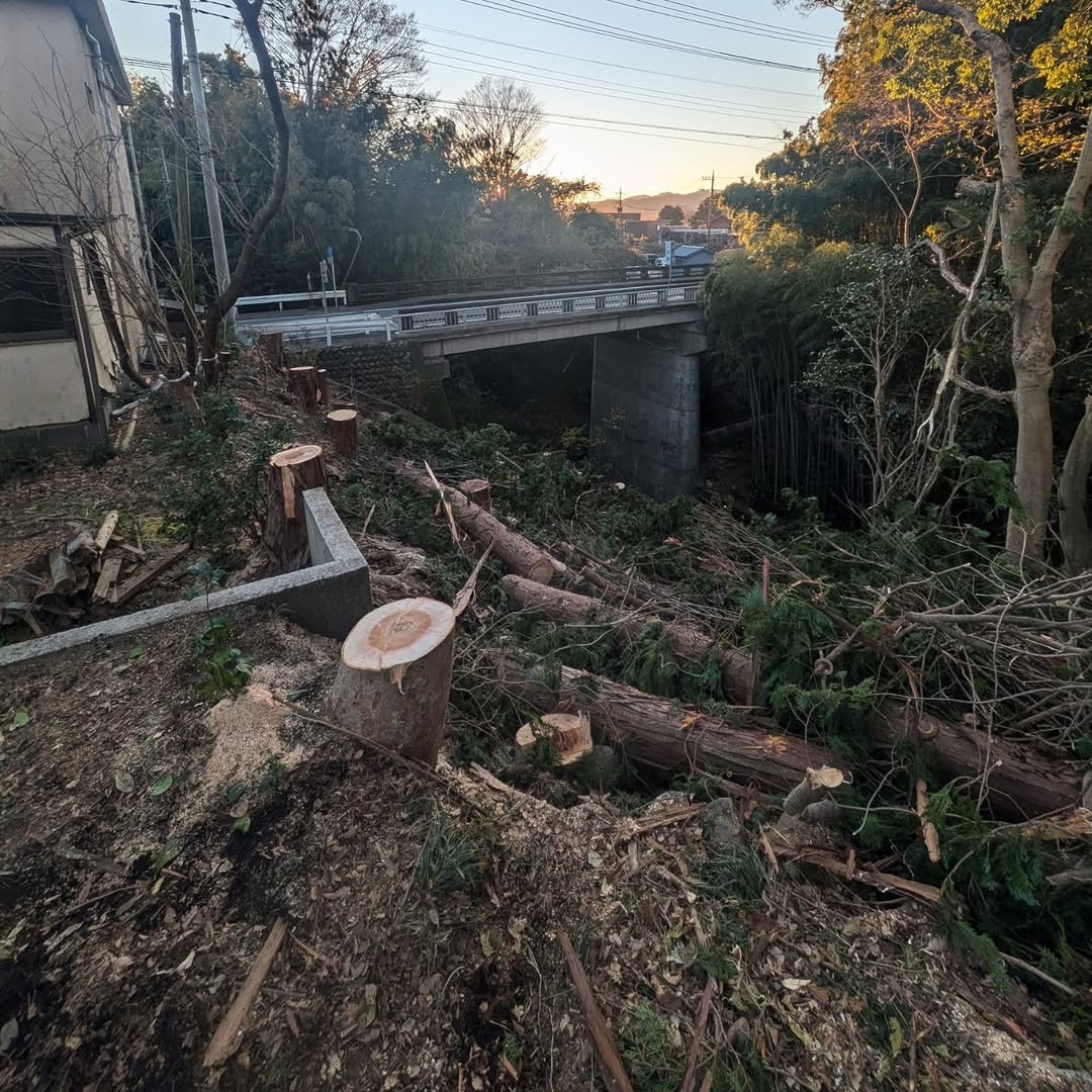 ご自宅の安全はもちろん、川への転落や周辺への影響も考慮しながら、一つひとつ確実に処理しました。